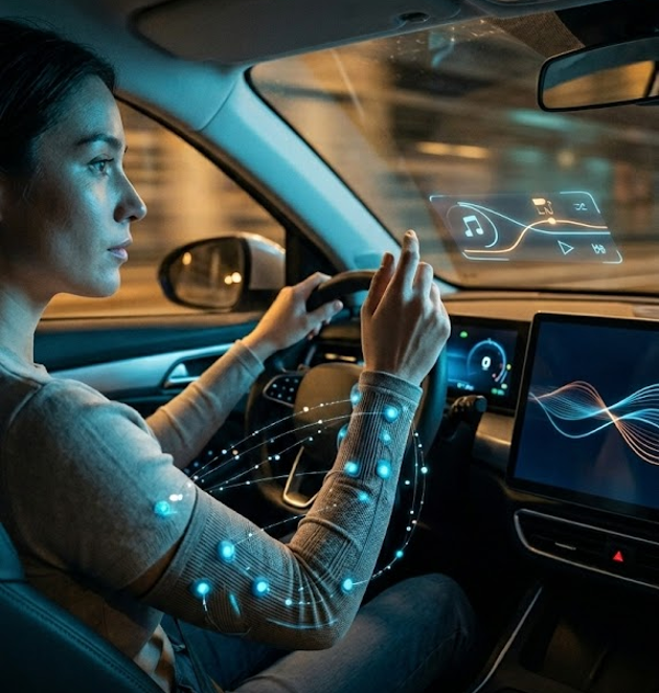 In this project, students will explore how EMG-based gestures can be leveraged to improve in-vehicle interaction and feedback. They will design and investigate how such gestures can support communication and feedback integration with an LLM-based in-cabin assistant. This includes how drivers might express intent, preferences, or reactions to system assistance through adaptive gestures; and how LLMs can interpret or adapt to such inputs to enable natural and context-aware interactions. Students will analyze how this modality for interaction affects overall usability, trust, and satisfaction, and examine how it complements/interferes with other modalities like voice or touch.